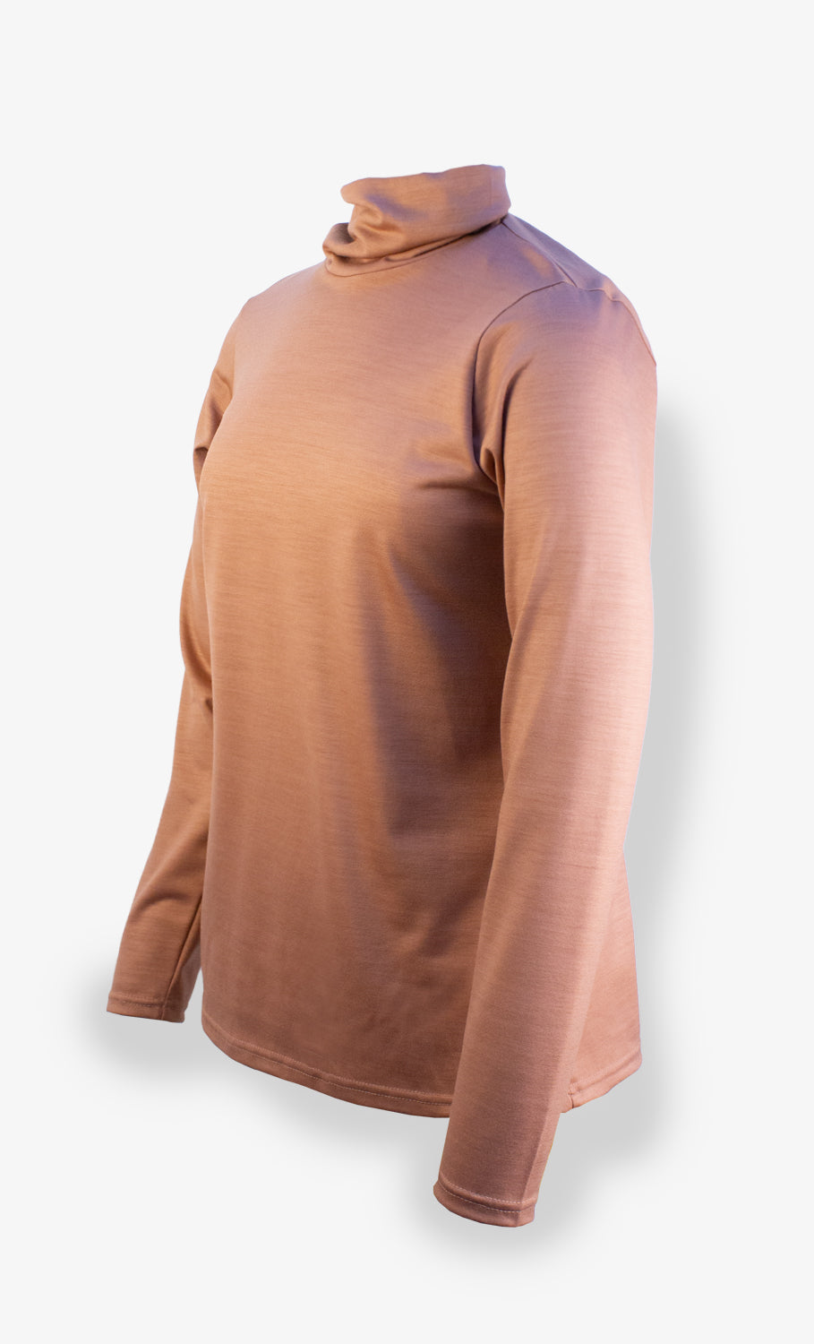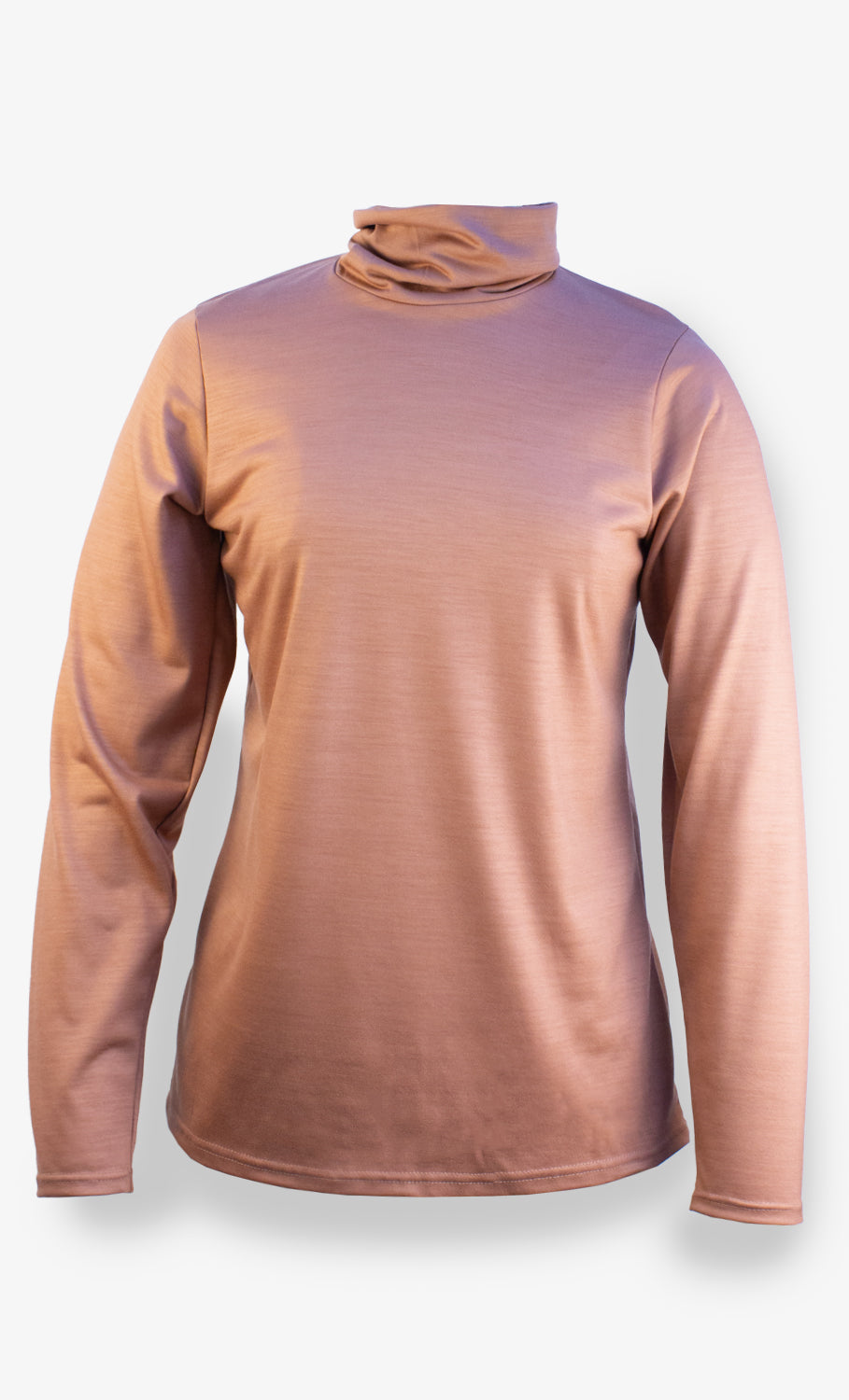 Manches longues Mérinos Femme Saumon - Col Cheminée